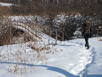 Покровск – административный центр сельского поселения из 12 населенных пунктов в Козельском районе. Не самого маленького - сегодня в них проживают 282 человека, а летом численность возрастает примерно в полтора раза. Деревня нас встречает приветливо: машина весело бежит по не слишком ровной, но почищенной от снега дороге, в сумерках тоже не заплутаешь – везде есть уличное освещение. Видно, что местные власти стараются, работают. Вот чуть в стороне - детская площадка. Через живописную речку Клютому оборудован аккуратный пешеходный мостик, соединяющий деревни Покровск и Слепцово.