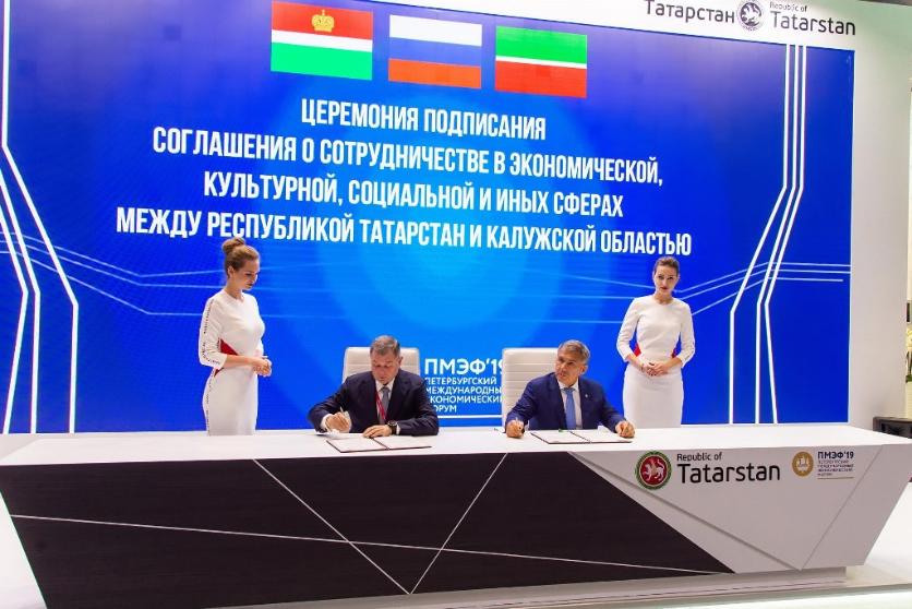 7 июня из Международного аэропорта «Калуга» начнутся регулярные рейсы авиакомпании «Руслайн» в Казань два раза в неделю. Соответствующее соглашение было подписано 6 июня в рамках Петербургского международного экономического форума. Документ своими подписями скрепили губернатор Анатолий Артамонов и президент Татарстана Рустам Минниханов.