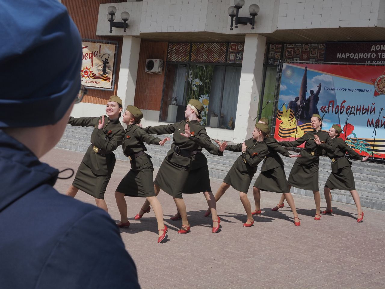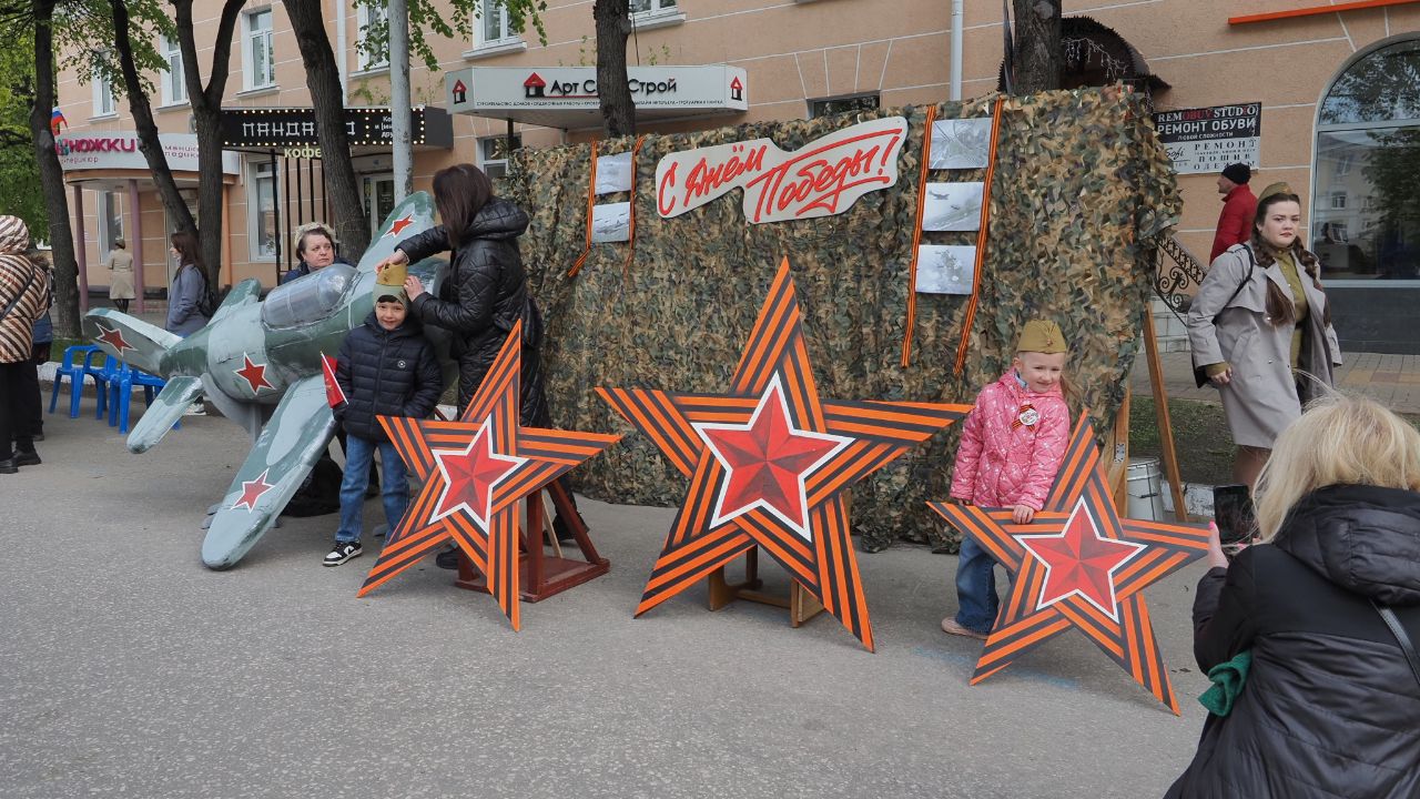На второй сцене рядом с театром кукол народные песни о войне исполнил коллектив «Калужская тальянка». На пешеходной части улицы Театральной работают тематические фотозоны.