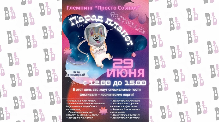 В программе фестиваля: мобильный планетарий, космическое костюмированное дефиле сотни собак корги, концерт вокалистов и космическая викторина.