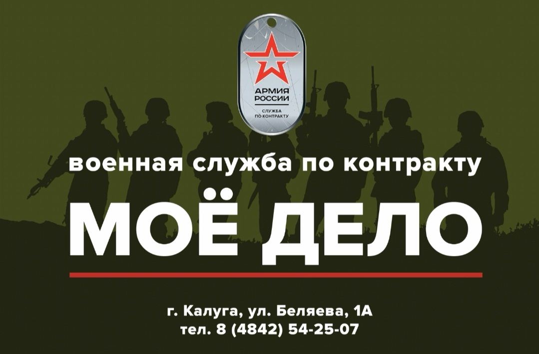 Пункт отбора на военную службу по контракту находится по адресу: город Калуга, улица Беляева, д. 1А.