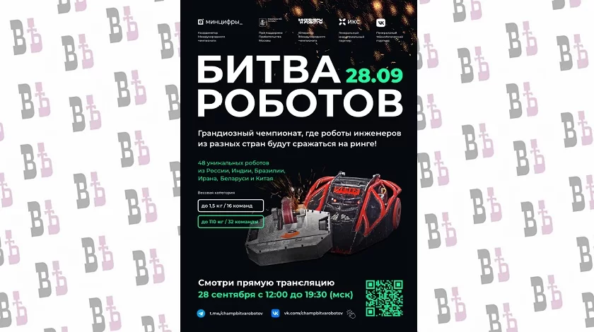 На «Битву роботов» в этом году отобраны 96 команд. В категории весом до 110 кг — 64 команды из семи стран, а в категории мини-роботов до 1,5 кг — 32 российские команды из 20 регионов. Партнёрами участников выступают ведущие технологические компании и вузы.