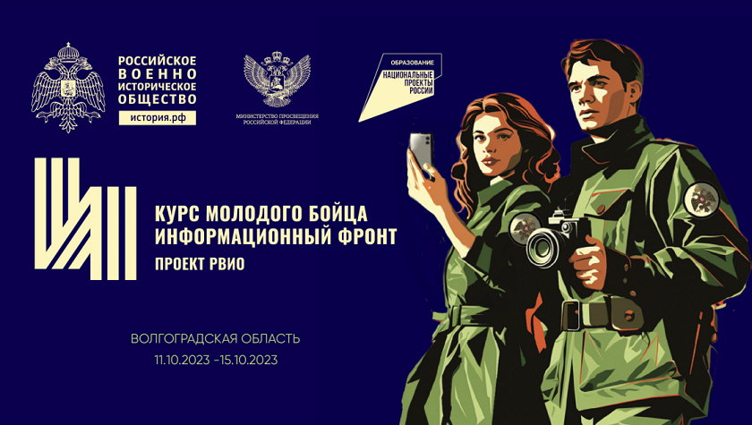 Отметим, что цикл уникальных мероприятий – Всероссийских молодёжных форумов «Курс молодого бойца. Информационный фронт» был запущен в 2023 году Российским военно-историческим обществом (РВИО) совместно с Минпросвещения Российской Федерации в рамках национального проекта «Образование».