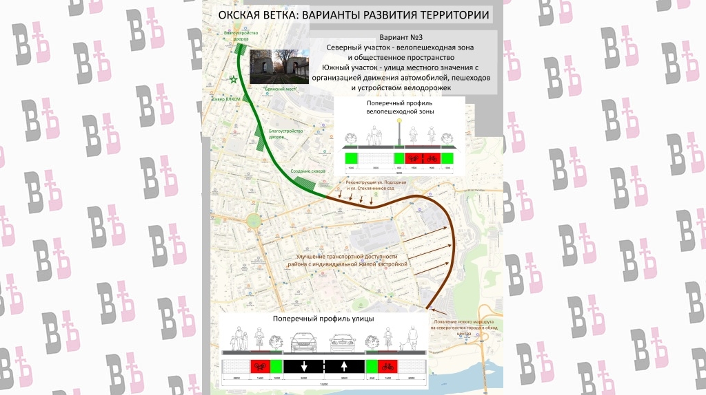 Первый вариант предполагает реконструкцию и объединение Резервного переулка, улиц Подгорной и Стеклянников сад с улучшением транспортной доступности прилегающей индивидуальной жилой застройки.