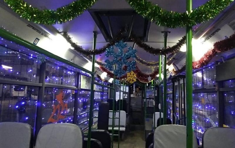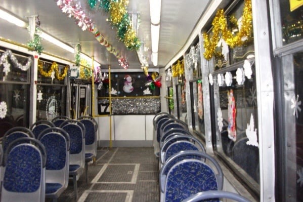 Мы готовы дать на новогоднее растерзание (то бишь украшение) несколько троллейбусов. Любое творческое объединение людей, еще лучше юных людей - школа, класс, кружок, секция, может выбрать себе троллейбус для авторского украшения его интерьера в соответствии со своим представлением о празднике. Это могут быть любые украшения: мишура, снежинки, детские рисунки, гирлянды, лишь бы это создавало праздничное настроение у пассажиров и вызывало улыбку. УКТ, в свою очередь и в меру своих сил, готово: