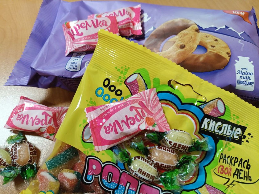 В состав качественного сладкого набора могут входить: шоколад, желейные и вафельные конфеты, вафли, пряники, бисквитное и галетное печенье, мягкий ирис, пастила, зефир и мармелад. Также в наборе может быть небольшая игрушка в отдельной упаковке.