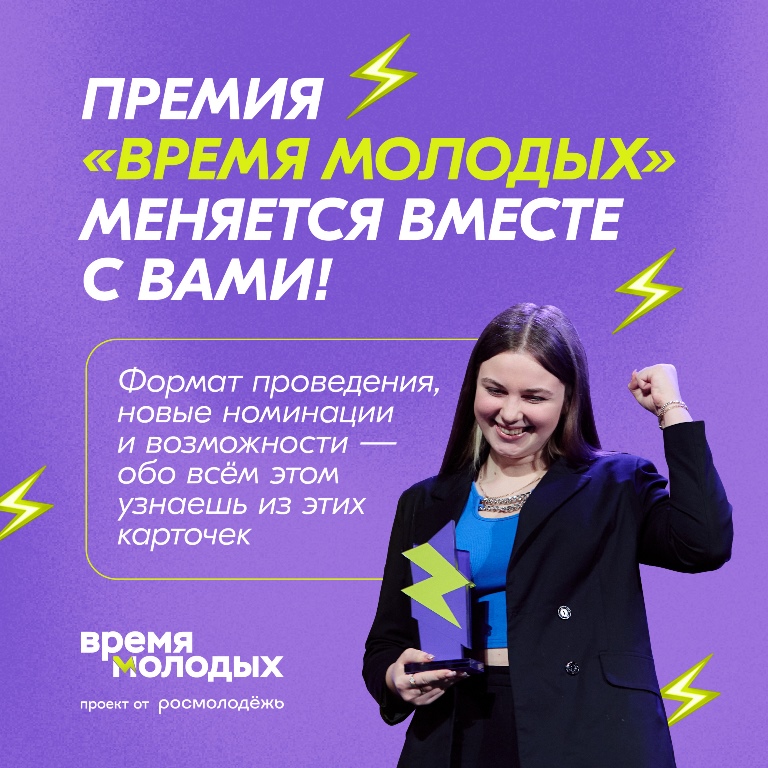 Премия создана для поощрения лидеров, организаций, сотрудников, руководителей и команд в сфере молодёжной политики, коммерческих организаций, молодёжных СМИ, блогеров, чья деятельность ориентирована на молодых.