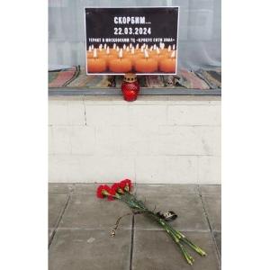 Калужане скорбят о жертвах теракта, произошедшего 22 марта в Москве. Возле кинотеатра «Центральный» организован мемориал, куда люди несут цветы.