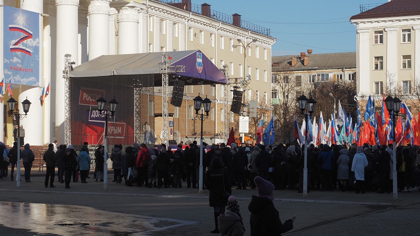 Сотни представителей профсоюзов, политических партий, общественных организаций и примкнувшие к ним неравнодушные жители города встали плечом к плечу для того, чтобы сейчас, когда в очередной раз решается судьба России, продемонстрировать народную поддержку взятого президентом и правительством курса на отстаивание национальных интересов нашей страны. Настроение у всех было приподнятым и решительным.
