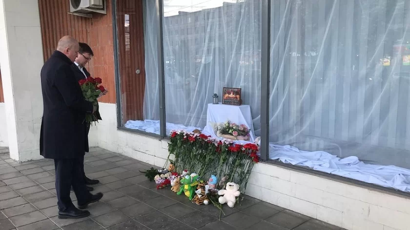 Калужане создали небольшой мемориал около Дома народного творчества и кино «Центральный». Возложить цветы и почтить память погибших пришли глава регионального минобра Александр Аникеев, директор калужского драмтеатра Александр Кривовичев, работники школ и музеев и многие калужане.