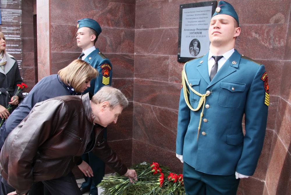 Память Александра Унтилова почтили городской голова Калуги Дмитрий Денисов, глава городского самоуправления Юрий Моисеев, калужский военком Андрей Иванов, председатель регионального отделения общественной организации «Комитет памяти маршала Жукова» Николай Алмазов, председатель Калужского городского совета ветеранов войны и труда Евгений Янкелевич, представители городских организаций и жители Калуги.