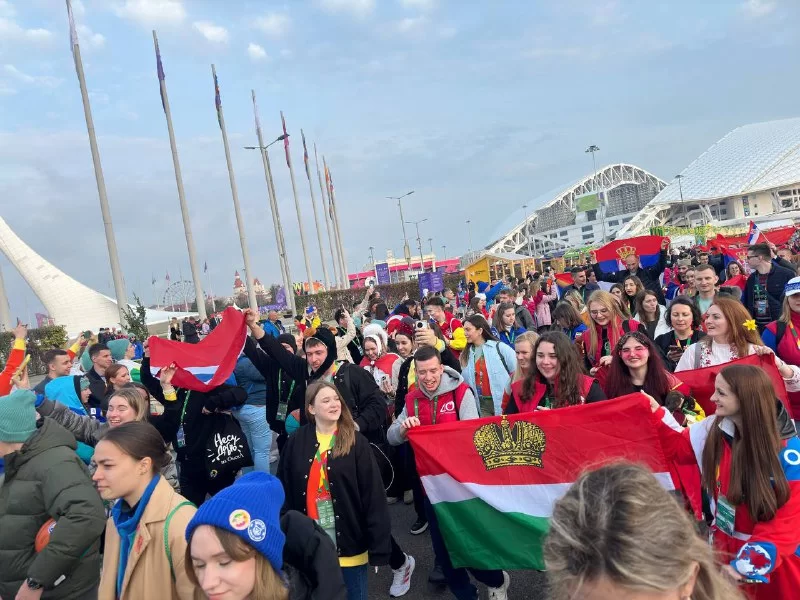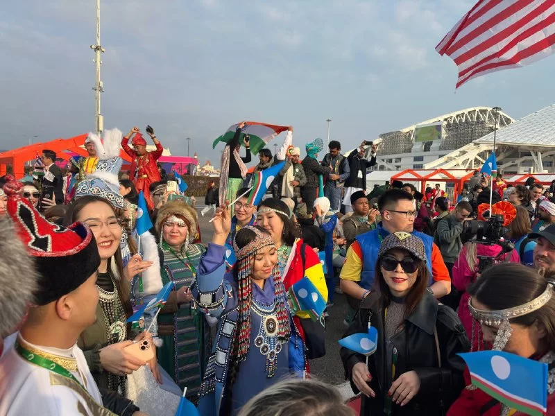 В рамках Всемирного фестиваля молодежи в «Сириусе» тысячи молодых людей прошли по улицам территории в национальной одежде.