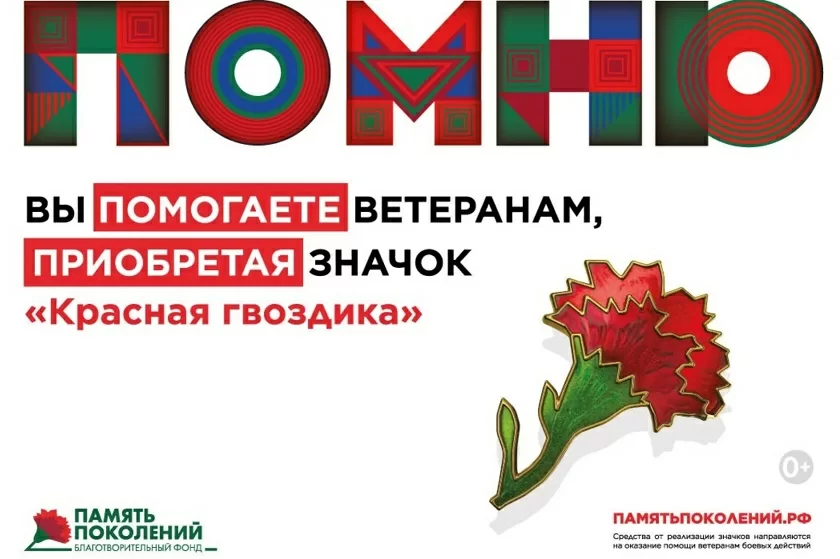 Приобретая за пожертвование значок красной гвоздики, жители России смогут поддержать ветеранов Великой Отечественной войны и других боевых действий.