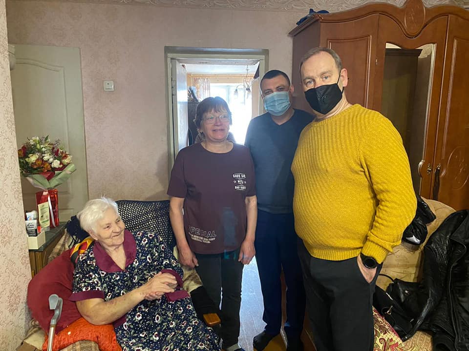Депутат Заксобрания Александр Окунев и депутат гордумы Максим Платов приехали к Зинаиде Федоровне, чтобы поздравить долгожительницу с годовщиной, вручить ей подарки и цветы.
