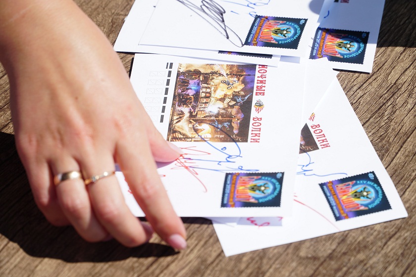 В этот день жительнице Калуги, являющейся частой гостьей мероприятий «Ночных Волков», была презентована памятная марка, посвященная XXV Международному байк-шоу «Крах Вавилона», которое состоялось под Севастополем 8 – 9 августа (это событие было отмечено в филателии). Она выпущена Федеральным агентством связи совместно с акционерным обществом «Марка». На марке, вышедшей тиражом 117 тысяч экземпляров, изображена символика клуба и название шоу. Также к выпуску подготовлен конверт, - его украшает фотография первого дня.