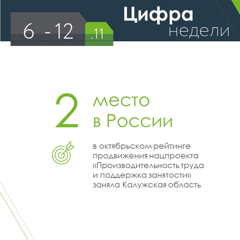В соответствии с указом президента РФ целью мероприятий нацпроекта является обеспечение к 2024 году темпов роста производительности труда на средних и крупных предприятиях базовых несырьевых отраслей экономики не ниже 5% в год (прирост производительности труда к 2024 году – более 20%). Оператором нацпроекта в Калужской области является региональный центр компетенций в сфере производительности труда, работающий на базе Агентства развития бизнеса. В нацпроект «Производительность труда и поддержка занятости» Калужская область вступила в 2018 году. В прошлом году о готовности провести производственные преобразования заявили 30 предприятий. В 2020 году общее число компаний - участников должно составить 54.