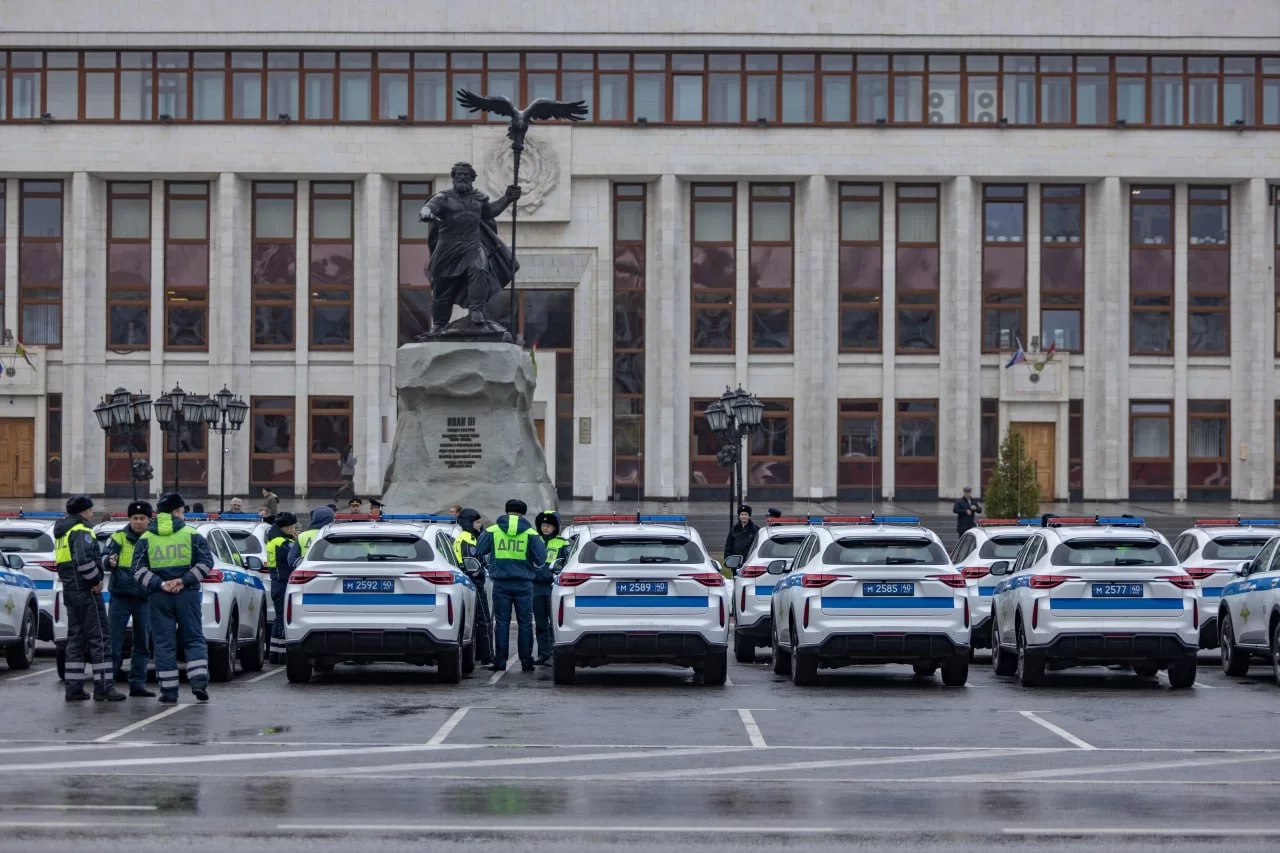 Владислав Шапша вместе с начальником УМВД России по Калужской области Сергеем Никифоровым вручили сотрудникам ГАИ областные и ведомственные награды. Новые автомобили после церемонии освящения отправились нести службу.