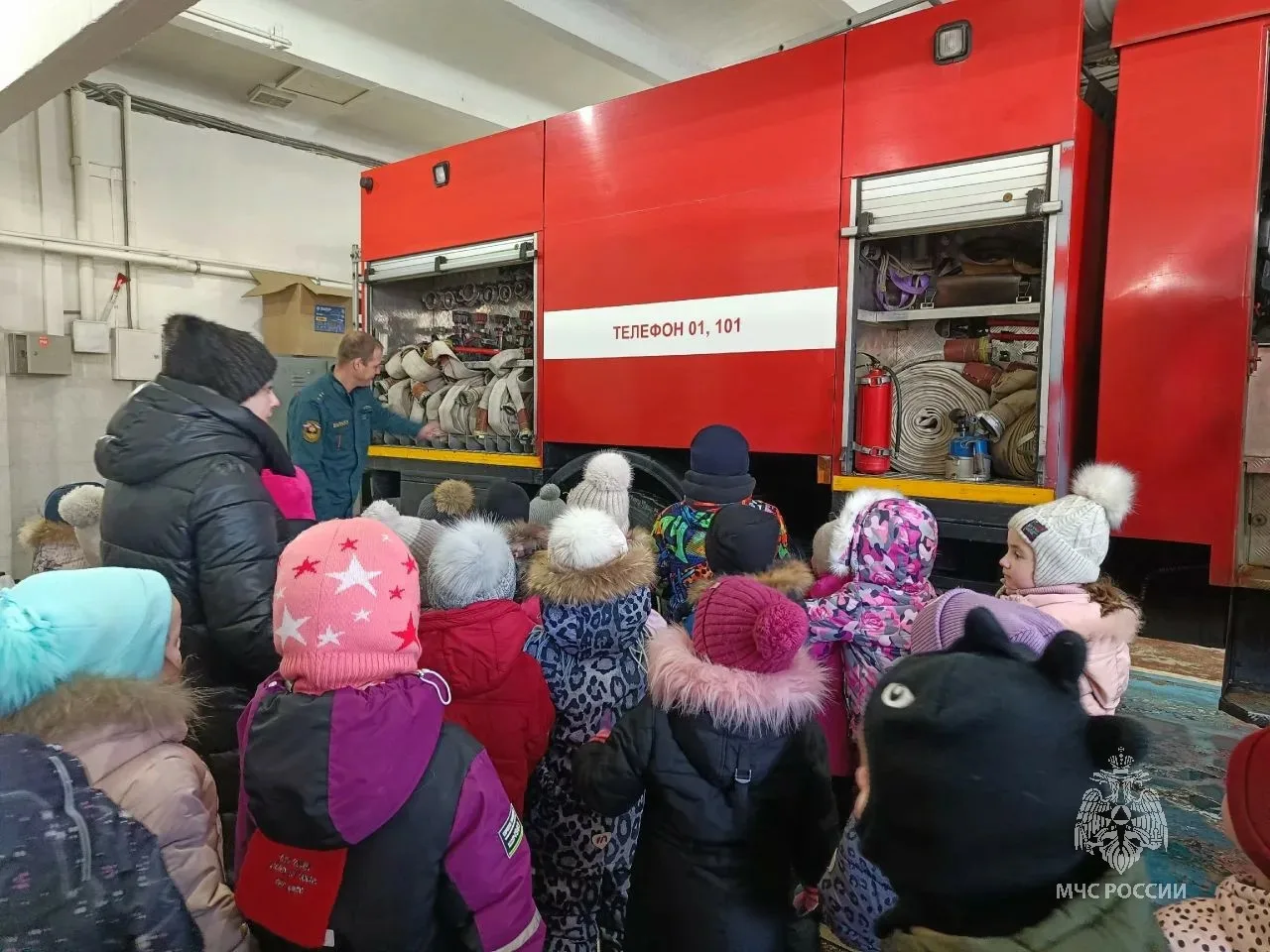 Дошкольники увидели, как диспетчер принимает вызовы, заглянули в кабину пожарной машины, примерили боевую форму и каски. Также для ребят была организована экскурсия в музей пожарной части.