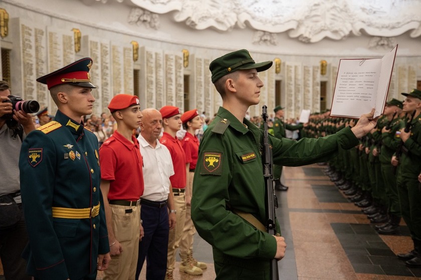 Клятву верности призывники дали в зале Славы музея, где высечены имена почти 12 тысяч героев Советского Союза и Российской Федерации.