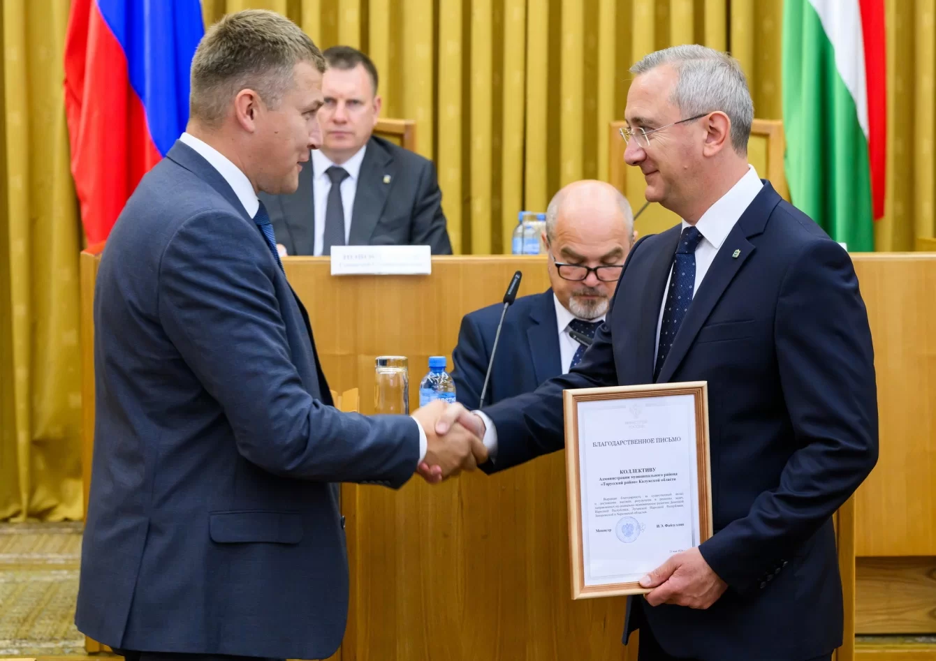 В четверг, 11 июля, в Калуге состоялся региональный консультативный совет глав администраций и муниципалитетов. На нем состоялось награждение Благодарственными письмами за подписью главы федерального Минстроя Ирека Файзуллина. За помощь ДНР, ЛНР, Херсонской и Запорожской областям награды получили администрации Жуковского, Боровского, Тарусского, Малоярославецкого Ферзиковского, Бабынинского, Перемышльского, Юхновского, Дзержинского и Людиновского районов, а также коллективы обнинского управления ЖКХ и компании «Калугатеплосеть».