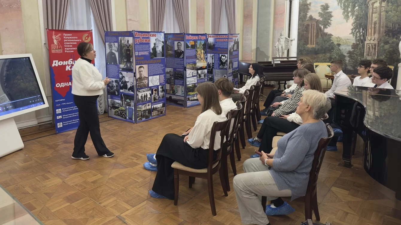 Проект Калужского регионального отделения Союза журналистов России, посвященный 80-летию Великой Победы, рассказывает о калужанах, совершивших подвиги на Донбассе, и об уроженцах Донецкой и Луганской земли, вписавшие свои имена в историю Калужского края. С героями проекта в музейно-краеведческом комплексе Усадьба Золотаревых познакомились ученики школы №13 г. Калуги. Им показали фильм, снятый ГТРК Калуга, и показали выставку, состоящую из материалов журналистов газеты «Калужские губернские ведомости».