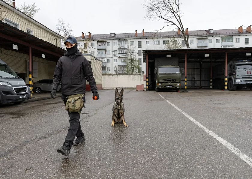 После официальной части для школьников была организована экскурсия, в ходе которой они ознакомились с выставкой современного оружия, экипировки и спецтехники, стоящих на вооружении Росгвардии, послушали рассказы бойцов о службе и увидели показательные выступления кинолога со служебной собакой.