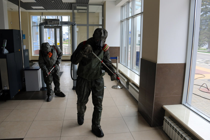 Для дезинфекции использовали противомикробные хлорсодержащие растворы, рекомендованные Роспотребнадзором, которые оказывают разрушающее воздействие на все вирусы, в том числе и коронавирус.