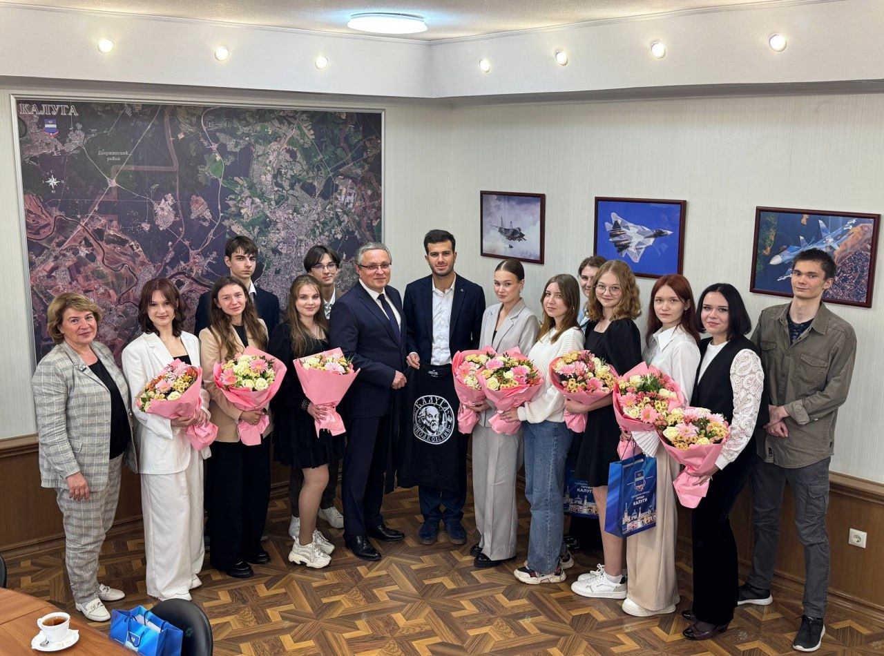 В завершение встречи мэр вручил стобалльникам толстовки с изображением Циолковского, как символ связи с малой родиной.