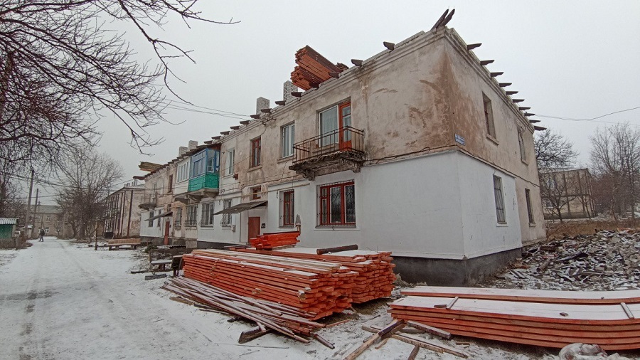 Строители заново возводят деревянные конструкции кровли и полностью меняют шиферное покрытие. Завершив работы на одном объекте, они сразу же переключаются на другой, поэтому ремонт идет значительно быстро.