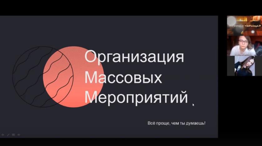Пандемия и период самоизоляции закончатся, а грамотная организация массовых мероприятий - один из ключевых навыков лидера, уверены в ОМЦ. Во время семинара Юлия подробно рассказала участникам о том, на какие детали следует обращать внимание на предварительном этапе планирования, а также напомнила основное правило, которому должен следовать каждый организатор - мероприятие должно быть организовано так, чтобы его создатели сами хотели принять в нем участие.