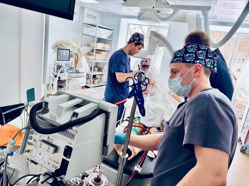 Пациент 71 года поступил в критическом состоянии с обширным инфарктом миокарда, многососудистым поражением, кардиогенным шоком и фибриляцией желудочков. Консилиум врачей незамедлительно принял решение о подключении больного к вено-артериальной ЭКМО. С ее помощью специалисты провели экстренную коронарографию, удалили тромбы и выполнили стентирование высочайшей группы риска. При этом пациент всё время оставался в сознании.
