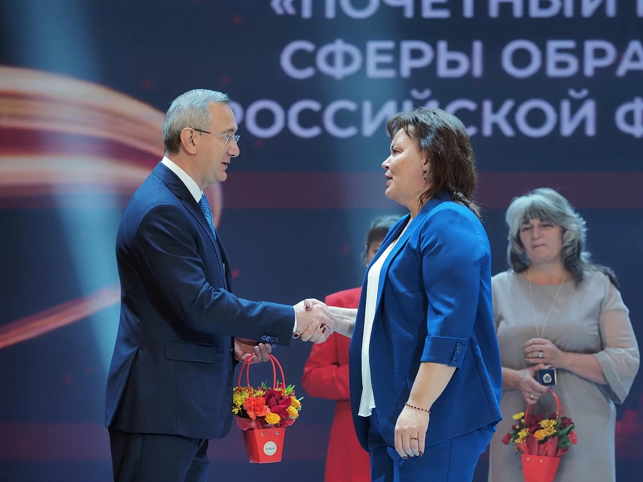 В ходе торжества лучшим учителям и руководителям образовательных организаций вручили награды Министерства просвещения РФ и награды регионального уровня.