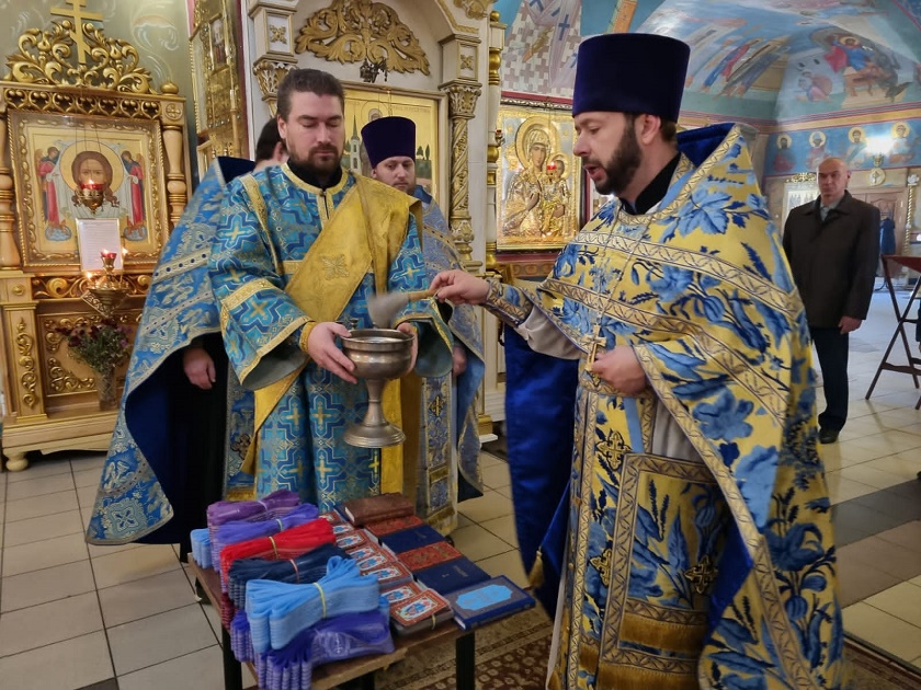 После обряда освящения настоятель храма протоиерей Алексий Пелевин обратился к прихожанам с призывом молиться о защитниках Родины.