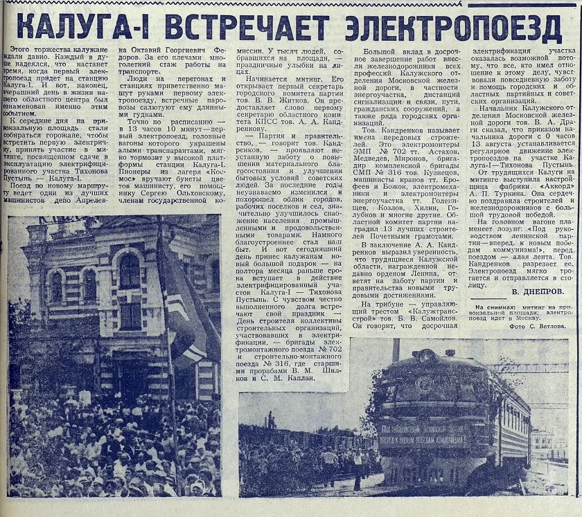 «Электрификация 16-километрового участка, соединяющего Калугу-1 и станцию Тихонова Пустынь, предоставила возможность более комфортных путешествий пассажирам, следующим непосредственно из областного центра в Москву и обратно. Эти изменения способствовали социально-экономическому развитию региона, повышению качества жизни калужан», – гласит анонс выставки на официальном сайте архива документов новейшей истории.