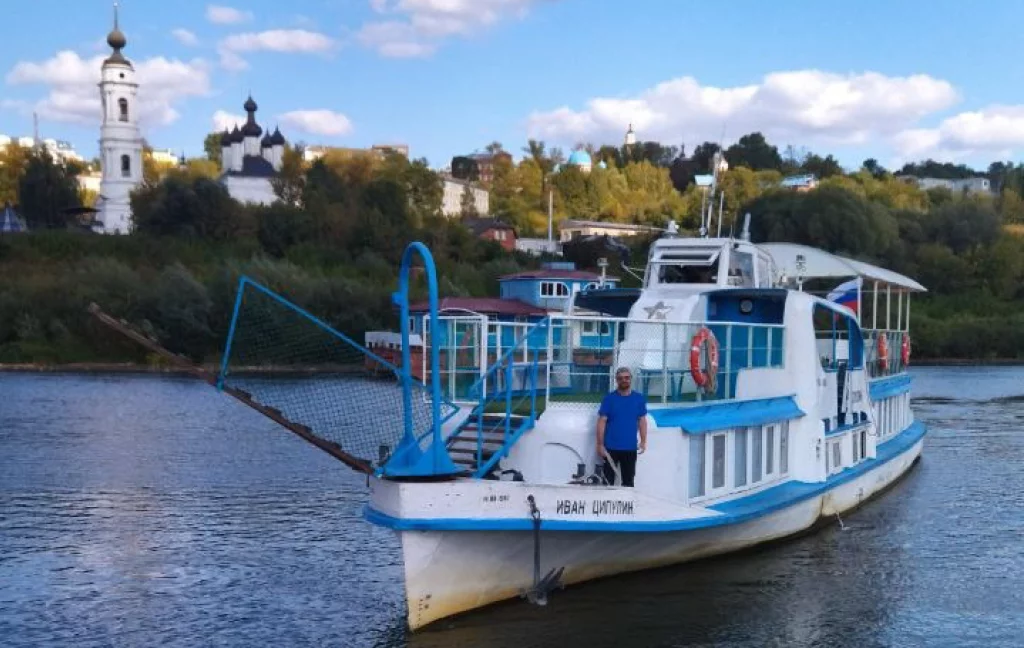 Теплоход «Иван Ципулин» плыл по Оке и наткнулся на мель у Пучковского моста, повредив себе руль.