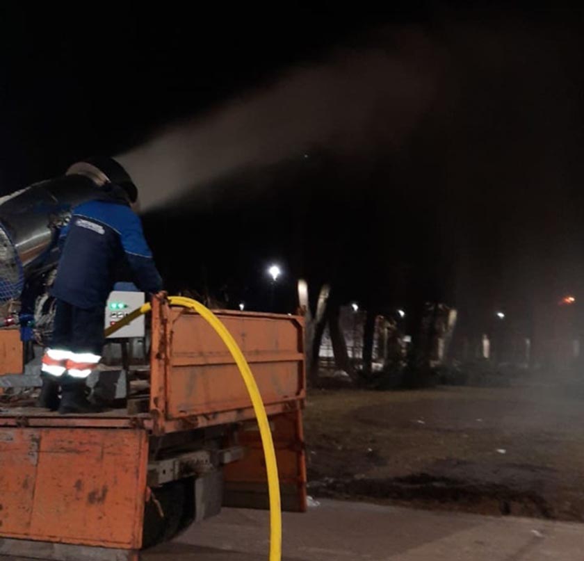 Комментируя видео, Дмитрий Денисов подчеркнул, что разбрасываемый снег экологически чистый – только вода.