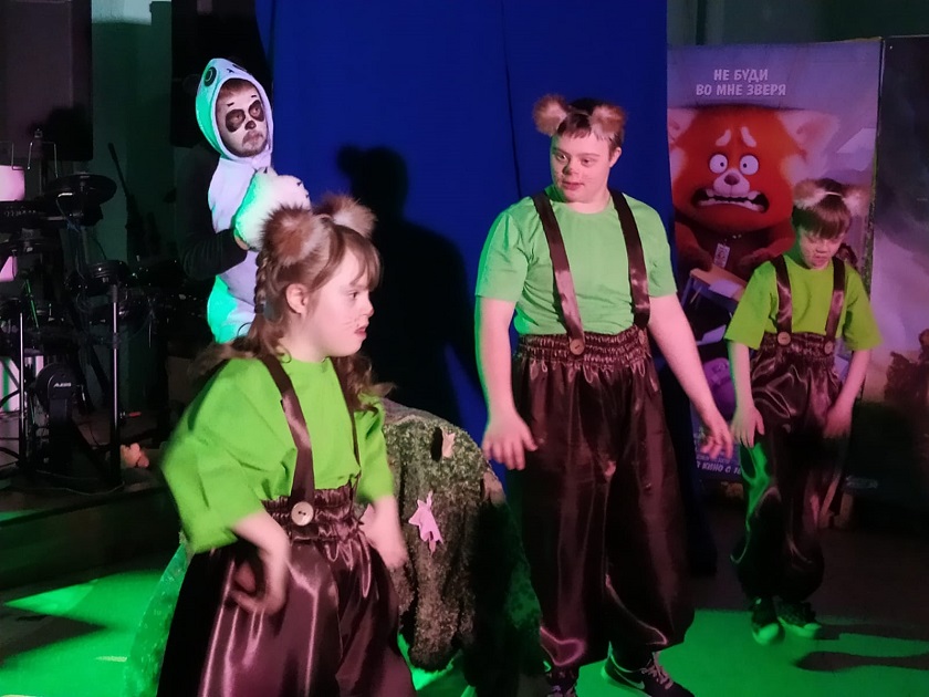 Детям показали представление со сказочной феей, котом, ловившем птичек, медведем, который любил мед и вредным букой, который в конце оказался просто пандой. В ходе представления дети с синдромом Дауна танцевали, играли с воздушным шариком, изображали птичек и ловко собирали мешочки с пыльцой.