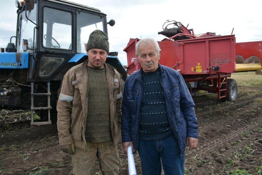 В один из сентябрьских дней мы побывали на поле, где завершалась уборка «второго хлеба». В четырёх километрах от полевого стана на небольшой скорости двигался трактор, таща за собой картофелеуборочный комбайн. На наших глазах его бункер наполнялся увесистыми клубнями.