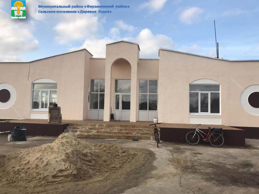 Дом культуры в деревне Зудна уже преобразился. Стал красивым, комфортным. Посвежел. Здесь проведен ремонт фасада, крыльца и внутренних помещений. Полы выложены кафельной плиткой, устроены навесные потолки, обновлены перегородки, проведены электромонтажные и отделочные работы. Установлены стеклопакеты, новые межкомнатные и входные двери. Также отремонтированы крыша и отмостка фундамента. Подведены все коммуникации: системы отопления и водоснабжения функционируют в штатном режиме.