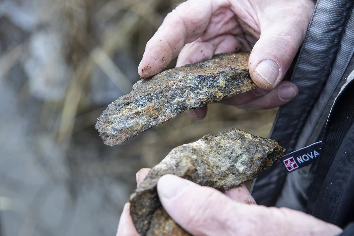 – Это камень из разряда моренных валунов. Тех самых, которые во время последнего оледенения были принесены ледниками из Фенноскандии. По составу, скорее всего, гранодиорит. В нем полевой шпат, кварц, черная слюда – биотит и другие минералы. Точнее можно будет сказать после проведения анализа. Молоток у меня есть. Возьмем образец.