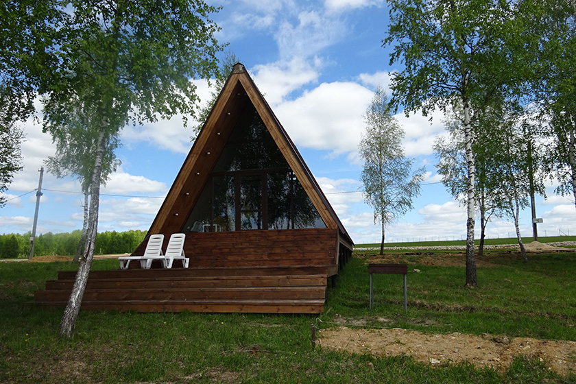 Здесь можно пожить, выбрав любой из шести домиков. Они предназначены для разного количества людей. Еще есть два оригинальных дома, архитектура которых на пике сегодняшней моды, они сделаны в стиле А-фрейм, их форма напоминает букву А - дом-шалаш, дом-палатка. Он и правда напоминает палатку, только надежную, комфортную и со всеми удобствами. Говорят, они самые любимые у туристов, поскольку вечером еще особым образом подсвечиваются и окна в них панорамные.