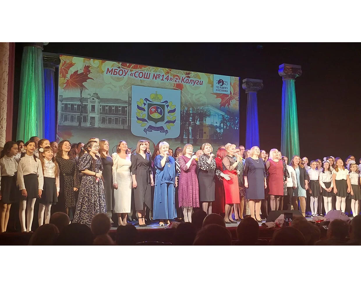 В областном драматическом театре на торжественном вечере собрались выпускники разных лет, учителя, учителя-ветераны, ученики, почетные гости. С приветственным словом к участникам праздника обратилась директор школы Ксения Познякова, много теплых слов было сказано в адрес учителей, посвятивших свою жизнь работе с детьми. Например, ярко поделился воспоминаниями об учебе и работе учителем в 14-й школе помощник министра образования и науки области Михаил Морозов, сравнивший школу с театром знаний, где в главных ролях выступают учителя и дети.Солидарен с Ксенией Позняковой, сказавшей, что сколько бы ни было лет школе – 100, 150 или больше, ей всегда будет одиннадцать. Ведь именно столько в ней учатся дети, просто меняются поколения.