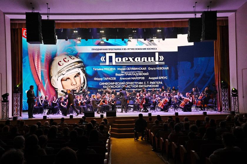 Открыла программу гениальная музыка Свиридова «Время вперед», мощная, жизнеутверждающая, зовущая на подвиг. А на большом экране над сценой шла трансляция исторической кинохроники и фотолетописи. И, конечно, в этот день все говорили о Юрии Гагарине.