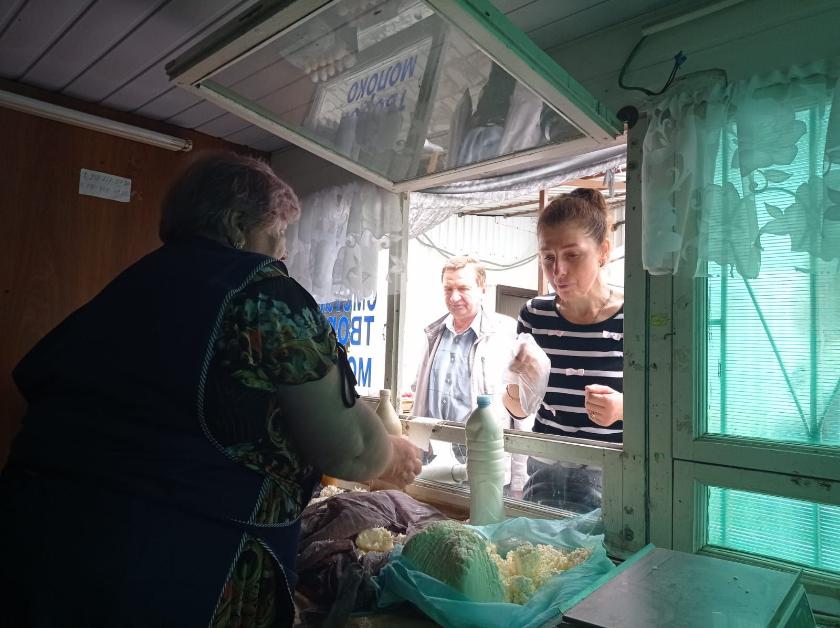 Народ подходит, берет свежее или топленое молоко, творог из трех видов выбирает по вкусу, сметанки, чтоб сдобрить борщ иль щи наваристые. А еще – сало, яйца. Все натуральное, домашнее, выращенное на подворном хозяйстве.