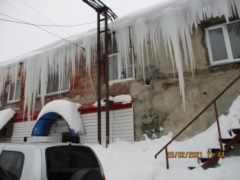 "С кровли здания свисают снежноледяные образования, прилегающая территория не очищена от снега и не обработана противогололедными материалами", — рассказали в областном управлении АТК.