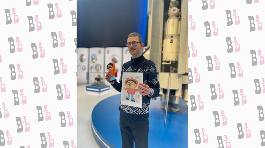 Андрею Шишакову 22 года, у юноши аутизм. Андрей очень любит творить и давно мечтает о космосе. На занятиях в мастерских, которые он посещает с 2018 года, юноша отразил свою мечту в рисунке, изобразив себя в роли космонавта. Рисунок вышел таким живописным и ярким, что педагог арт-мастерской Татьяна Степанова предложила сделать на его основе игрушку. Ее Андрей взял с собой на экскурсию в Государственный музей истории космонавтики имени К.Э. Циолковского, который воспитанники мастерских регулярно посещают в рамках сотрудничества.