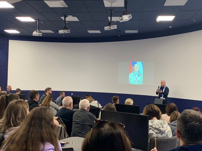 Олег Артемьев подробно рассказал о предполётной подготовке и тренажёрах, старте и этапах полёта, работе на орбите и возвращении на Землю. Герою России калужане задали много вопросов, касающихся быта космонавтов на орбитальной станции, их любимой еде и, конечно, о впечатлениях от первого российского космического фильма «Выбор». Космонавт ответил, что любимое блюдо космонавтов – творог с орехами и пошутил, что им можно обмениваться на любое другое, что нравится тебе.