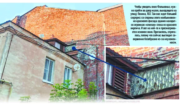 В одной из комнат выставочного зала находится окно из стеклоблоков Фальконье. Однако его уникальность не подчеркивается, поскольку выглядит окно удручающе не только внутри помещения, но и снаружи. Активисты калужского Том Сойер Феста приняли решение восстановить его и вернуть Калуге еще одну культурную и историческую ценность. Вот что рассказала нам координатор калужской группы волонтеров Том Сойер Феста Ольга Небольсина: