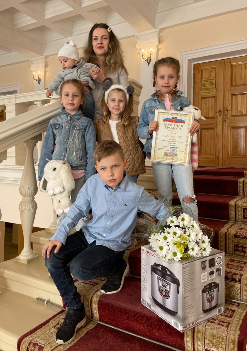 В числе победителей районного фестиваля-конкурса отметили семью Виктора Ивановича Гришкина, который является опекуном сироты Насти и своего внука Руслана. Гришкины стали победителями конкурса в номинации «Теплый дом». А вот семья Алексея и Марии Самохиных, образовавшаяся в 2011 году, стала абсолютным лидером в номинации «Большая дружная семья». Это неудивительно, ведь молодые родители воспитывают пятерых детей! Старшему Юре сейчас девять лет, затем идут близнецы Мила и Соня, Марьяна и пятимесячный Феденька. Большая и дружная семья живет в новом доме, где всем хватает места. В номинации «Мир семейных увлечений» была отмечена семья Наталии и Николая Захаренковых. Для них, а также их детей Миши и Маши жизненным девизом являются слова: «С творчеством идем по жизни, без него не проходит ни один день».