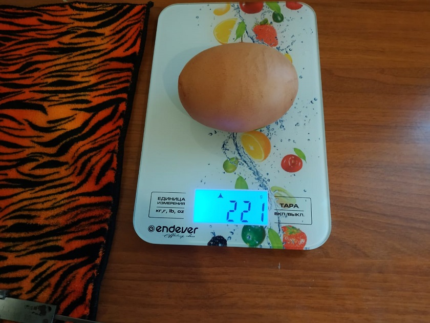 Неожиданную находку обнаружил Алексей Федоров, житель деревни Запрудная, делая обход своего небольшого птичника. Вес необыкновенного яйца составляет 221 грамм, высота – 9,5 сантиметров и ширина - без нескольких миллиметров шесть.